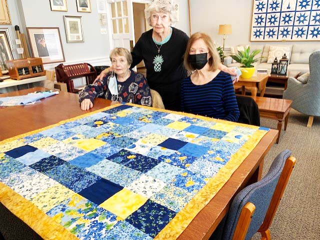 Even with the restrictions of the pandemic, throughout most of the past year the quilters have continued to meet and put together prayer quilts. Anyone who can sew is invited to join them on Tuesday mornings. Shown below are Penny, Betty and Theo with one of their creations.