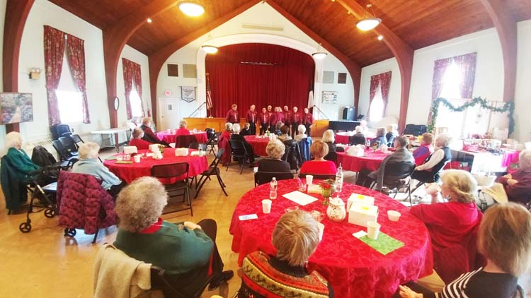 Attendees at the December, 2021 Women's Guild Meeting were treated to a presentation provided by the Blue Chip Chorus of Teaneck, NJ. The group is well known for its acapella singing of familiar songs. Their presentation at the meeting included Christmas Carols, popular Christmas songs, and some show tunes. Dressed in their maroon shirts with identical ties and black pants, the group presented their songs with narration between each song. The Director told some funny stories throughout the performance. After the presentaton, the singers shared a dessert with the attendees. It was a wonderful presentation.