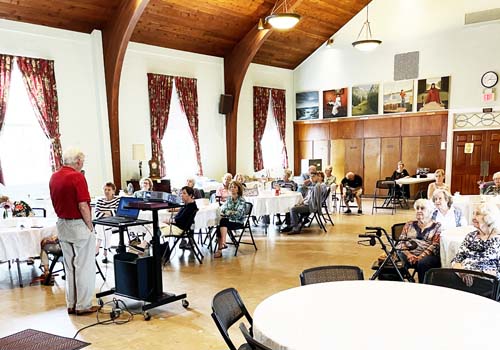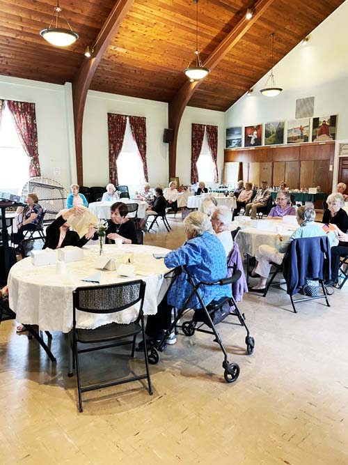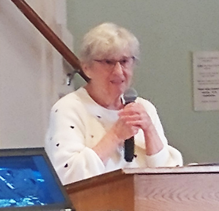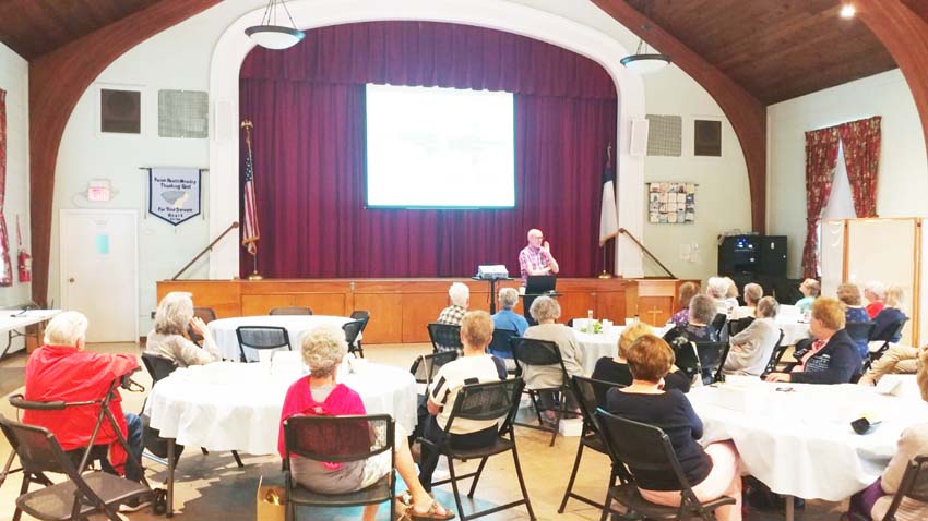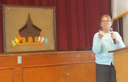The devotions before the lunch were provided by Susanne Tillman. In the typical fashion of a former 1st grade teacher, she illustrated her talk with flannel cutouts depicting a church building with its foundaton, structure, doors, steeple and of course people.