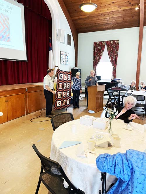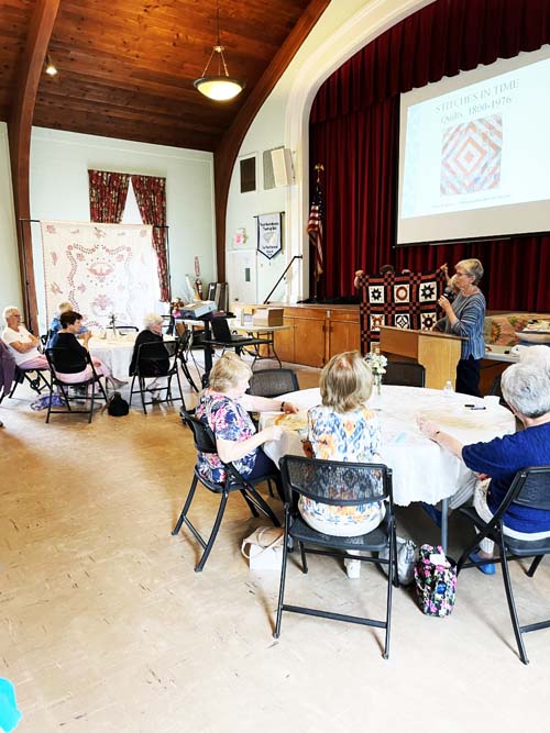 The Guild was treated to a presentation by Peggy Norris, chair of the Bergen County Quilt and Coverlet show. Peggy brought examples of the construction of quilts with different stitches, fabrics, and patterns. Her presentation showed many different types and styles of quilts, most from this area. The quilts she displayed were stunning.