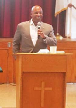 Syd at the podium with his Power Point presentation