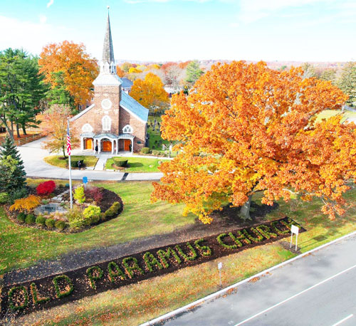 The front of Old Paramus Reformed Church is known for its name being spelled out in hedges along Route 17. Well, time took its toll with the hedges and they had deteriorated. The deer probably also enjoyed feasting on them. We have now replaced them with new hedges that have been put in place so that the tradition continues. OLD PARAMUS CHURCH