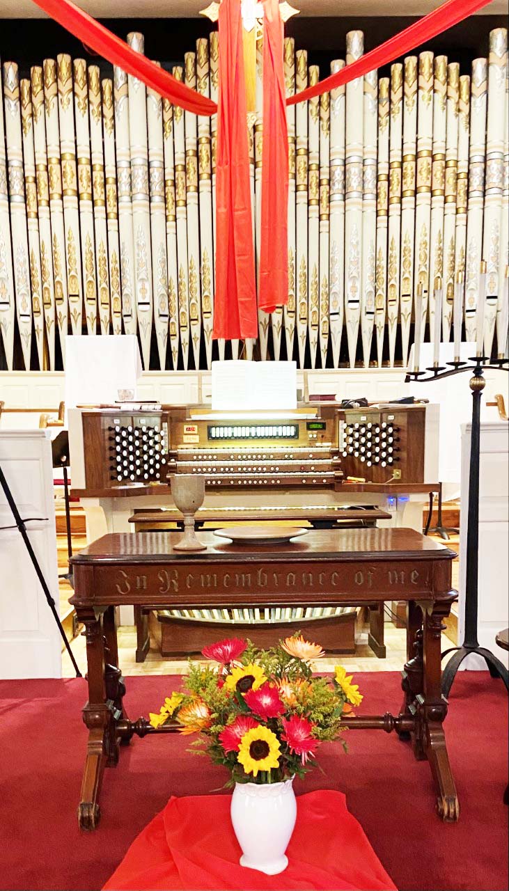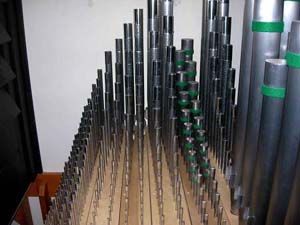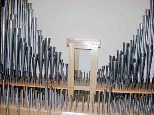 The main organ is located behind the 1890's facade. Although these facade pipes actually played when the first organ was installed here, they were pitched at different levels, not unusual in those days.